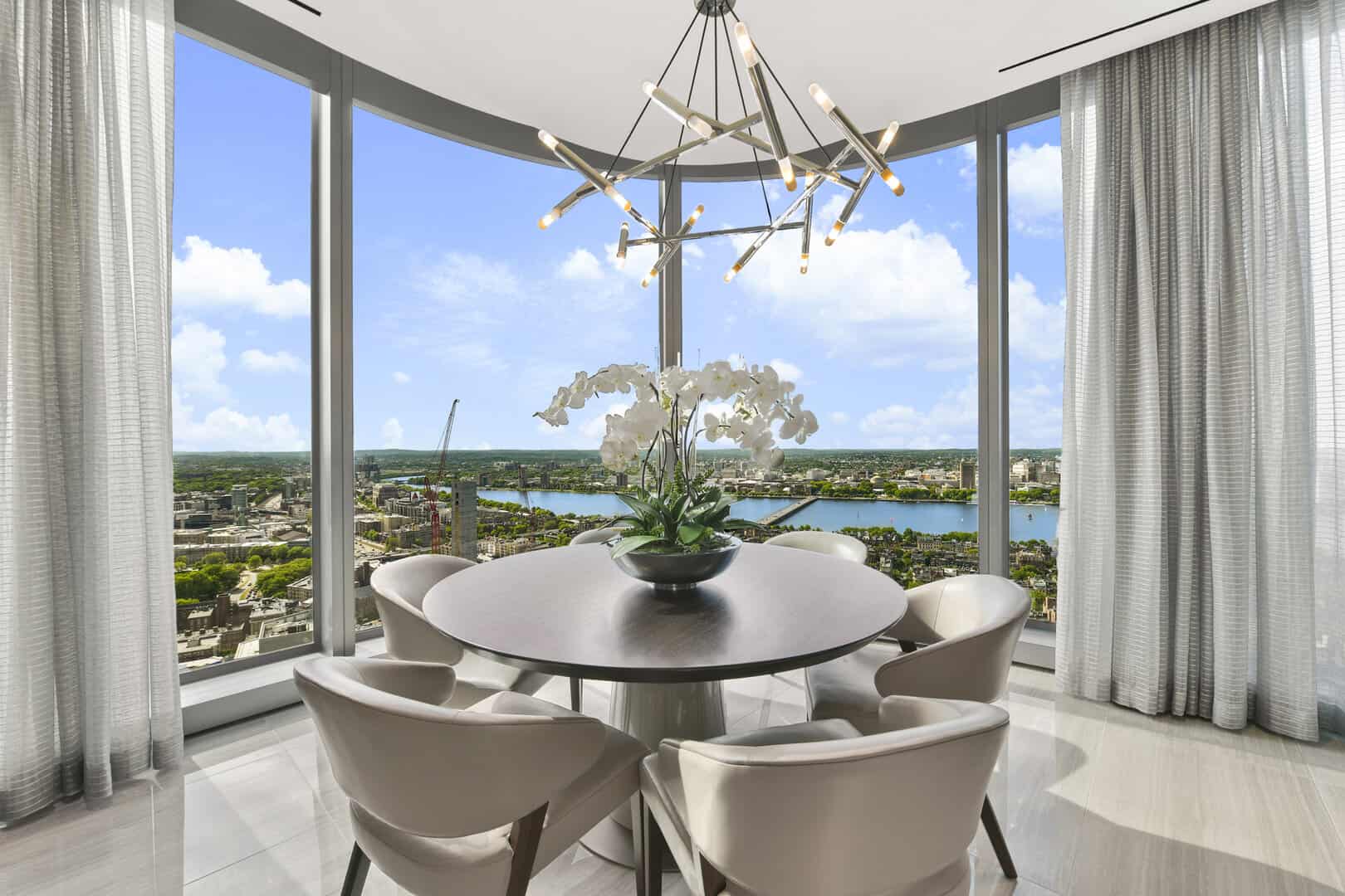 At 61 stories and over 740 feet, Four Seasons Private Residences One Dalton Street, Boston is the city’s tallest residential building. Designed by world-renowned architect Henry N. Cobb, the all-glass tower is shaped as an equilateral triangle with rounded bays and floor-to-ceiling windows that feature wrapping views of the Back Bay skyline, the Charles River, Fenway, South End and beyond to Boston Harbor and the Blue Hills.